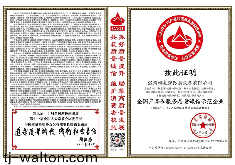 COPYRIGHT © 2018 温州钢氟强防腐设备有限公司 版权所有 网站地图 主营产品:钢衬四氟管道、衬氟管道、衬氟补偿器、钢衬四氟三通、不锈钢衬四氟波纹管膨胀节